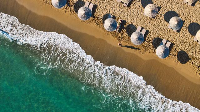Prímo pri piesočnatej pláži ocenenej modrou vlajkou. Ležadlá, slnečníky a uteráky zdarma. Taverna na pláži.