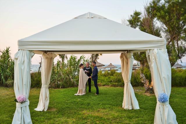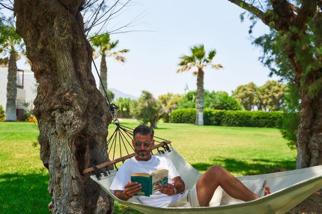 Hlavná budova a bungalovy v krétskom štýle. Vstupná hala s recepciou, reštaurácia s medzinárodnou a gréckou kuchyňou, taverna, talianska reštaurácia à a la carte, lobby bar, konferenčná miestnosť. V záhrade 3 bazény, detské brodítko, slnečná terasa, ležadlá, osušky a slnečníky zdarma.