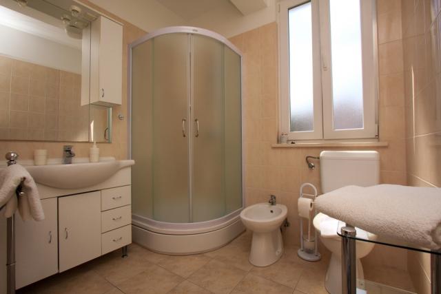 - Vybavenie: umyvadlo, sprchový kút, bidet, WC, zrkadlo