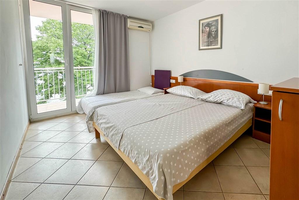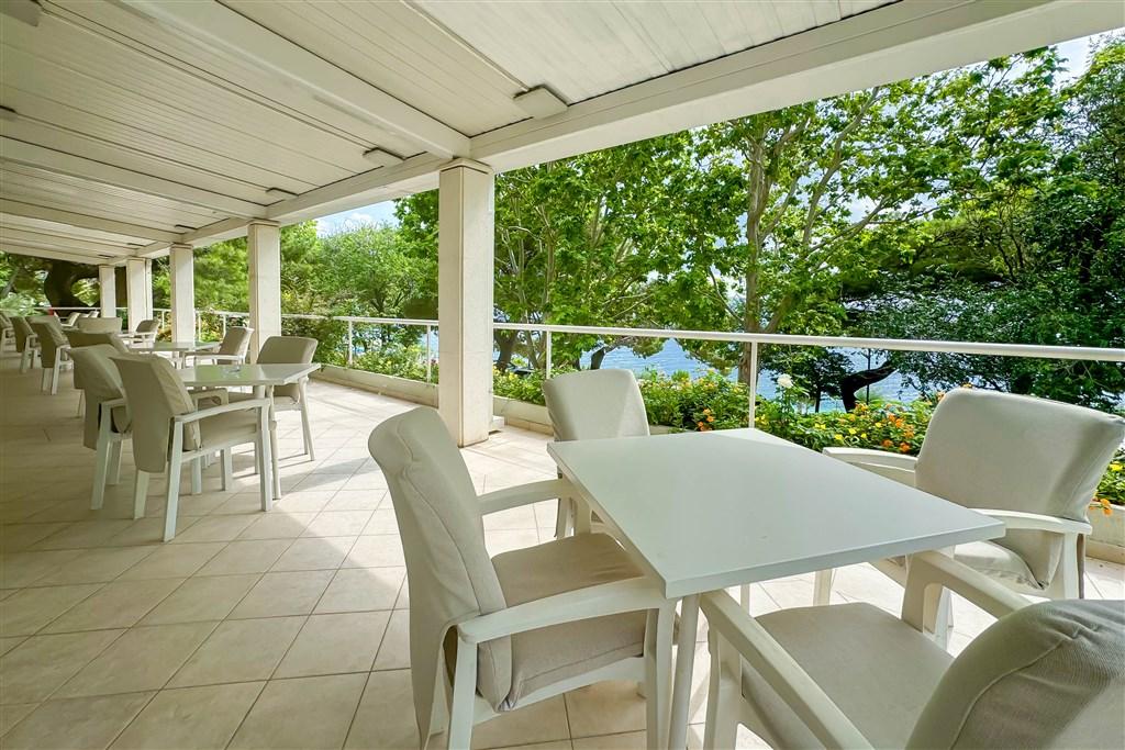 hotel pavilónového typu je situovaný priamo pri širokej štrkovej pláži • ležadlá a slnečníky za poplatok |