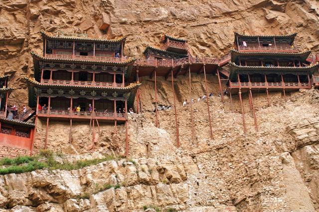 impozantného Visutého chrámu, prilepeného k skalnej stene. Cez