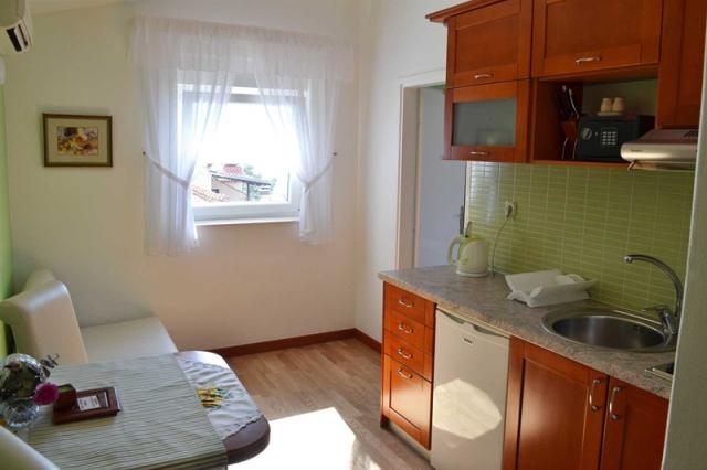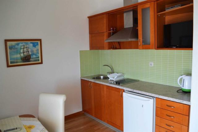 | Poloha: do 50 m od moře Sport a zábava: vodní sporty, cyklistika, turistika. POZICE NA MAPĚ ZOBRAZUJE SÍDLO AGENTURY, KDE SE PŘI PŘÍJEZDU HLÁSÍTE, NEJDE O KONKRÉTNÍ POZICI VILY. Mato apartmány: Tribunj je vesnice nacházející se asi tři kilometry severozápadně od Vodice a je známá především svými poklidnými nábřežními kavárnami. Nachází se tu krásné staré město na poloostrově spojeném starým kamenným mostem, kostel sv. Mikuláše na vrcholu kopce, z něhož je panoramatický výhled na akvatorium, a křišťálově čisté pláže (zejména pláž Zamalin). Každý rok v létě Tribunj pořádá Regionální oslí závod, při kterém lidé závodí na oslech. Letiště ve Splitu (SPU) je vzdáleno 70 km. V blízkosti jsou dva národní parky: Krka (25 km) a Kornati (20 km). Apartmány Mato se nachází hned u moře, cca 200 m od centra vesnice Tribunj. Nejbližší restaurace je vzdálená 80 m. Apartmány disponují jednou nebo dvěma ložnicemi, denní místností s vybaveným kuchyňským koutem, koupelnou se sprchou a nabízí alespoň částečný pohled na moře. K vybavení patří klimatizace, WI-FI, rychlovarná konvice, lednice. Destinace: Malebné dalmatské město Tribunj s přidruženým sídlem Sovlje se nachází v samém srdci Šibenicko - Kninského pobřeží. Specialitou Tribunje je jeho rozdělení městské části a historického centra na pevninu a poloostrov (původně ostrov, později spojen kamenným můstkem s pevninou), kde dnes sídlí například radnice, turistický úřad, pošta, farní úřad, kulturní centrum, restaurace a další. Úzké uličky mezi vysokými domy vhodně doplňují nádherný výled na Lukovnjak a Logorun, dva ostrovy tribunjského archipelagu umístěné naproti staré části i na další dva ostrůvky Prišnjak a Sovljak, které jsou západně směrem na Sovlje. V posledních desetiletích se obyvatelé soustřeďují stále více na cestovní ruch, ale tradičně se věnují i rybolovu - je zde vyhlášený rybí trh - a pěstování olivovníků. V roce 2011 zde žilo cca. 1500 stálých obyvatel. Pláže jsou tu oblázkovo štěrkové, vhodné I pro malé děti, například zátoky Rupa a Sovlja. Nachází se tu i marina. |