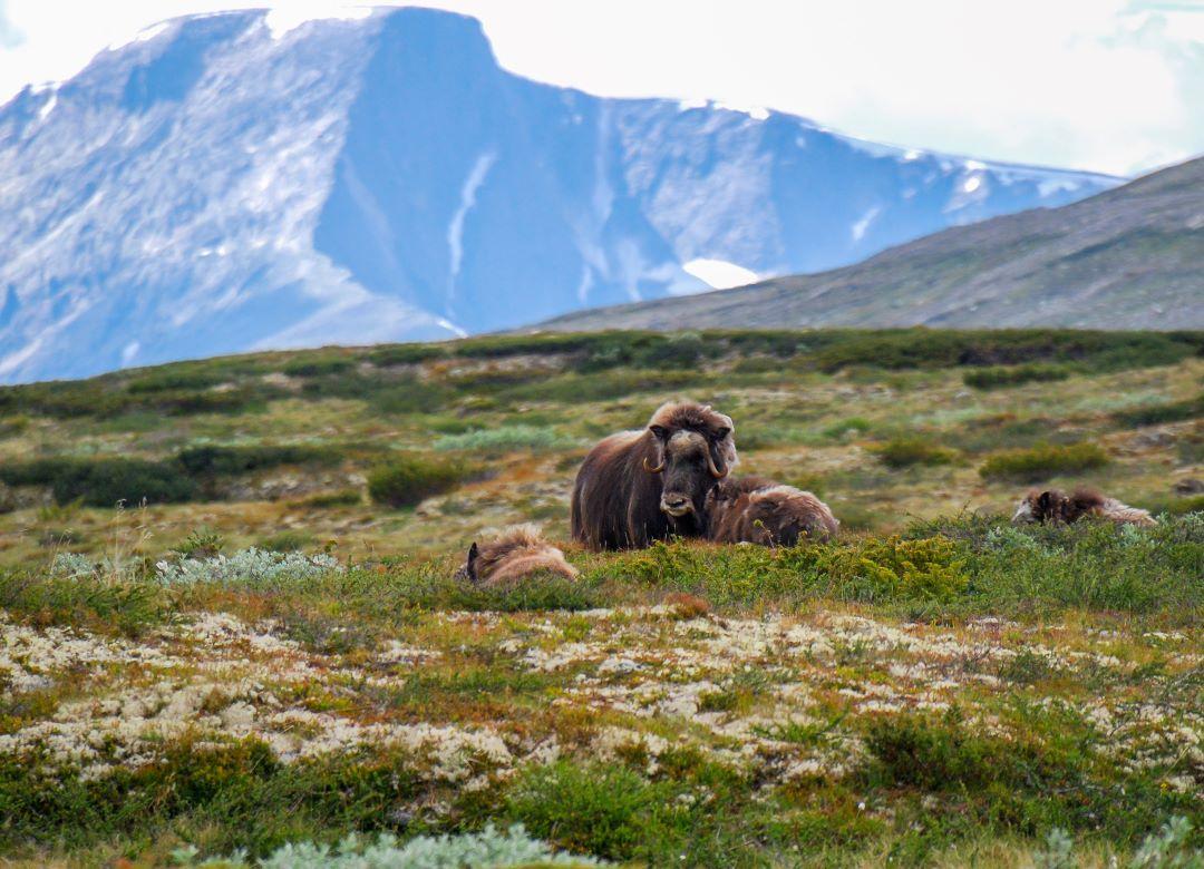 Den 6. Po snídani pojedeme východní stranou NP Rondane na sever. Za dobrého počasí nabízí silnice č. 27 krásné výhledy na nejvyšší vrcholky tohoto pohoří. Dnešním cílem však bude rozsáhlý NP Dovrejell - Sunndalsfjell. Díky minerálně bohatému skalnímu podloží je park doslova botanickou zahradou norských hor, kde žije také mnoho druhů ptactva, sobi a vzácný tur Pižmoň severní. Pižmoni byli reintrodukováni do Dovrefjellu v minulém století z Grónska a jejich populace se úspěšně rozrůstá. S místním průvodcem se můžete vydat na středně náročnou túru za pozorováním pižmoňů (za příplatek, výlet na 3-6 hodin v horském terénu (červená botička), nutno objednat předem - viz příplatek). Ti, kdo zůstanou na hotelu mají možnost procházek v oblasti, např. k vodopádu Myfallet ve skalní soutěsce.