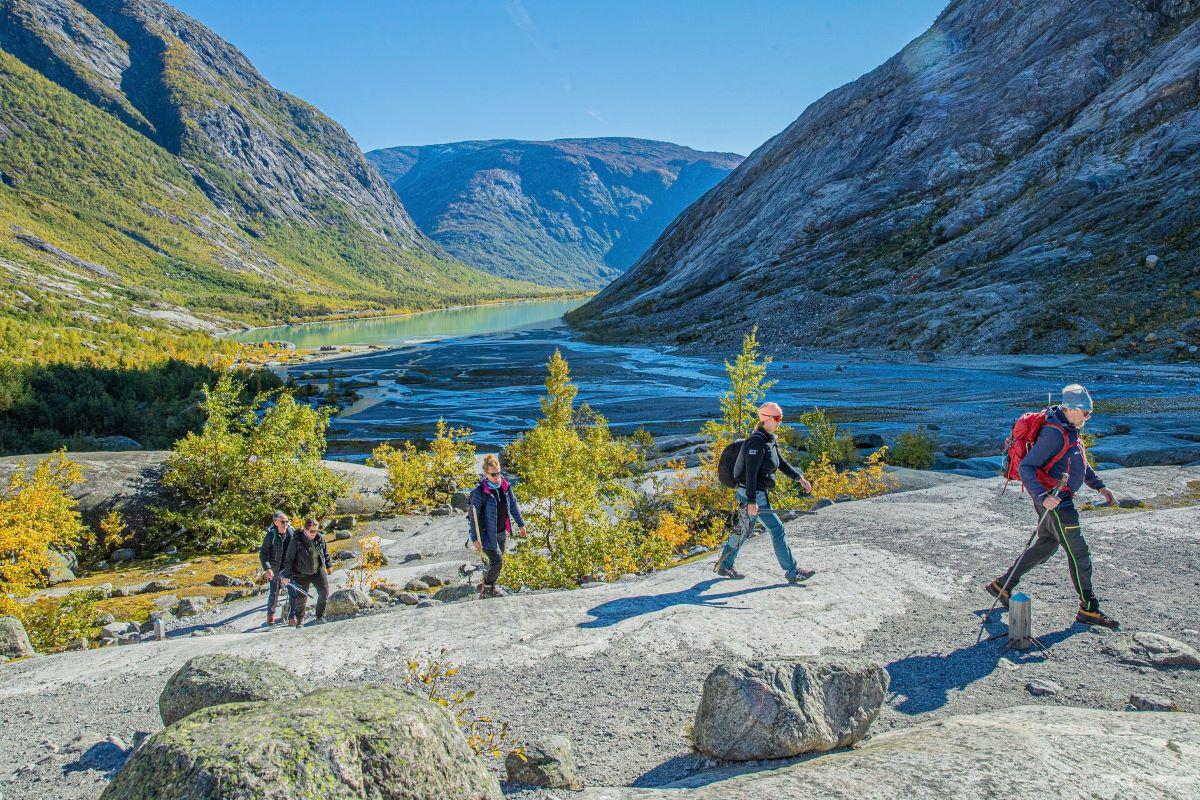 Den 3. Jeden z nejdelších fjordů světa Sognefjorden (204 km) přeplujeme trajektem. Dnešek bude opět ve znamení fjordů a největšího ledovce evropské pevniny Jostedalsbreen. Kolem Lustrafjordu a proti proudu ledovcové řeky dojedeme na dosah nádherného ledovcového splazu Nigardsbreen. Nejprve se přeplavíme lodičkou po ledovcovém jezeře a následně dojdeme až na dohled mohutného čela ledovce (ledovec ustoupil, nejde dojít až přímo k němu). Stezka vede přes ohlazené skály, které za vlhka kloužou. Po silnici Sognefjellvegen vyjedeme do nejvyššího silničního sedla v Norsku (1 440 m n. m.). Odtud jsou fantastické pohledy na nejvyšší skandinávské pohoří Jotunheimen a jeho přilehlé ledovce. Příjezd na ubytování v podhůří.