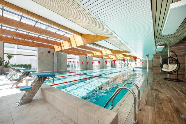 bazén 18 x 7 m, krytý plavecký bazén, vonkajší bazén s tobogánmi,