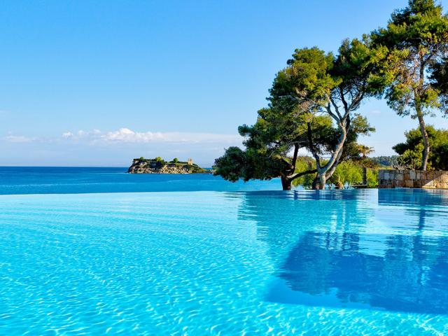 Luxusní hotel patří do komplexu Sani Resort. Pláže umístěné u hotelů, bohatá infrastruktura a množství atrakcí umožňují strávit bezstarostnou dovolenou. Hotel doporučujeme rodinám s dětmi.