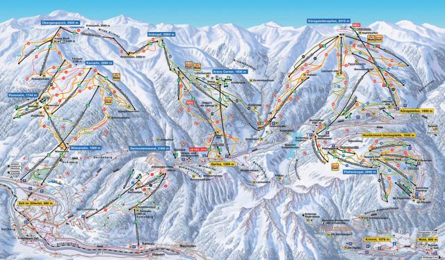 - nedozírné možnosti zimních radovánek na rozsáhlém tyrolském území zasahujícím až do sousedního Salcburska#- moderní skiareál řadící se k nejlepším v celém Rakousku#- vesměs nová přepravní zařízení s obrovskou kapacitou dokonale propojující jednotlivá střediska#- každoročně vysoké investice do další modernizace #- novinkou pre sezónu 2022/23 moderná 8miestna sedačková lanovka Kapauns s "bublinami" a vyhrievaním nahrádzajúca pôvodnú kratšiu dvojsedačku #- pre následujúcu sezónu ďalší veľké plány strediska v podobe úplne novej 10miestnej kabínovej lanovky Krimml-X-Press pre rýchle a pohodlné spojenie medzi Zell am Ziller a Gerlosom #- už od sezóny 2019/20 nová 10místná kabinková lanovka Stuanmandl na vrchol Isskogel nad Gerlosem s vyhřívanými sedačkami a vysokou přepravní kapacitou#- kompletně zrenovovaná horní stanice lanovky Rosenalmbahn v Zell am Ziller s pohodlným zázemím pro lyžaře včetně nového skidepotu#- zrenovovaná restaurace Wiesenalm u mezistanice lanovek Rosenalmbahn a Karspitzbahn v Zell am Ziller s velkou sluneční terasou s fantastickým výhledem na údolí Zillertal, zajímavostí nejdelší kachlová kamna na světě#- sjezdovka až do Zell am Ziller, s 10 km nejdelší údolní sjezd Rakouska s bezmála dvoukilometrovým převýšením#- v poslední době významné investice do umělého zasněžování#- díky novému zásobnímu jezeru již téměř 100 % sjezdovek v okolí Zell am Ziller možno vysněžit i za nepřízně počasí#- velké lákadlo pro freeridery v podobě jízdy v hlubokém sněhu podél kryté čtyřsedačky Krimml X-Press nad Gerlosem#- jedinečný snowpark v Gerlosu Boarder Town, jeden ze 3 nejlepších v Rakousku, s gigantickou halfpipe 100 m dlouhou, 14 m širokou a 3 m vysokou#- funpark s 80metrovou halfpipe v Krimmlu a Action-Park Kreuzwiese v Zell am Ziller se spektakulárním bag jumpem#- připojení k internetu zdarma u hlavních lanovek a na horských chatách#- 8 lyžařských a snowboardových škol, 35 horských chat, 3 měřené úseky, 4 kluziště a 2 tenisová a squashová centra#- skibus zdarma po celém areálu#- Wald / Königsleiten nabízející i atrakci v podobě nejvýše položeného planetária v Evropě#- Zell am Ziller, centrum Zillertalu, místo s rodinnou atmosférou a zároveň ideální výchozí bod pro poznávání Zillertal Areny#- 1 300 metrů nad mořem položený Gerlos nabízející nejen zábavu na více než 100 km sjezdovek, ale i proslulé après ski párty#- romantický Krimml, proslavený Krimmelskými vodopády, s 380 metry největšími v Evropě, a osvětlenou přírodní sáňkařskou dráhou#- všemi středisky oblasti nabízené atraktivní možnosti běžeckého lyžování na skvěle upravených tratích#- populární tobogánová dráha Arena Coaster přímo u hlavní lanovky v městečku Zell am Ziller a dráha pro snowtubing v Gerlossteinu |