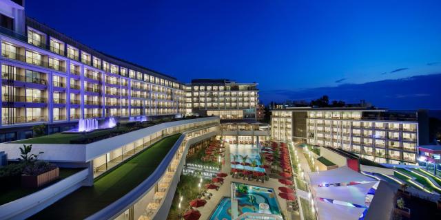 Pekný, luxusne zariadený hotelový komplex, má 374 izby, 3 vonkajšie bazény (vrátane bazénu so šmykľavkami), vnútorný bazén, konferenčné miestnosti, Wi-Fi pripojenie. K dispozícii je sauna, hammam, masáže, fitness centrum, lekár, čistiareň, kaderníctvo, požičovňa motorových vozidiel, animačné programy, živá hudba, vodné športy a biliard. Hotel je vhodný pre všetky vekové kategórie. |