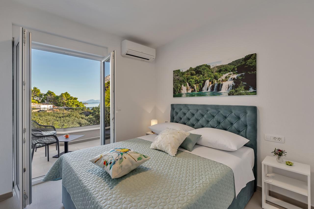 - Vybavenie: Klimatizácia, výhľad na more, nočné stolíky, WC,