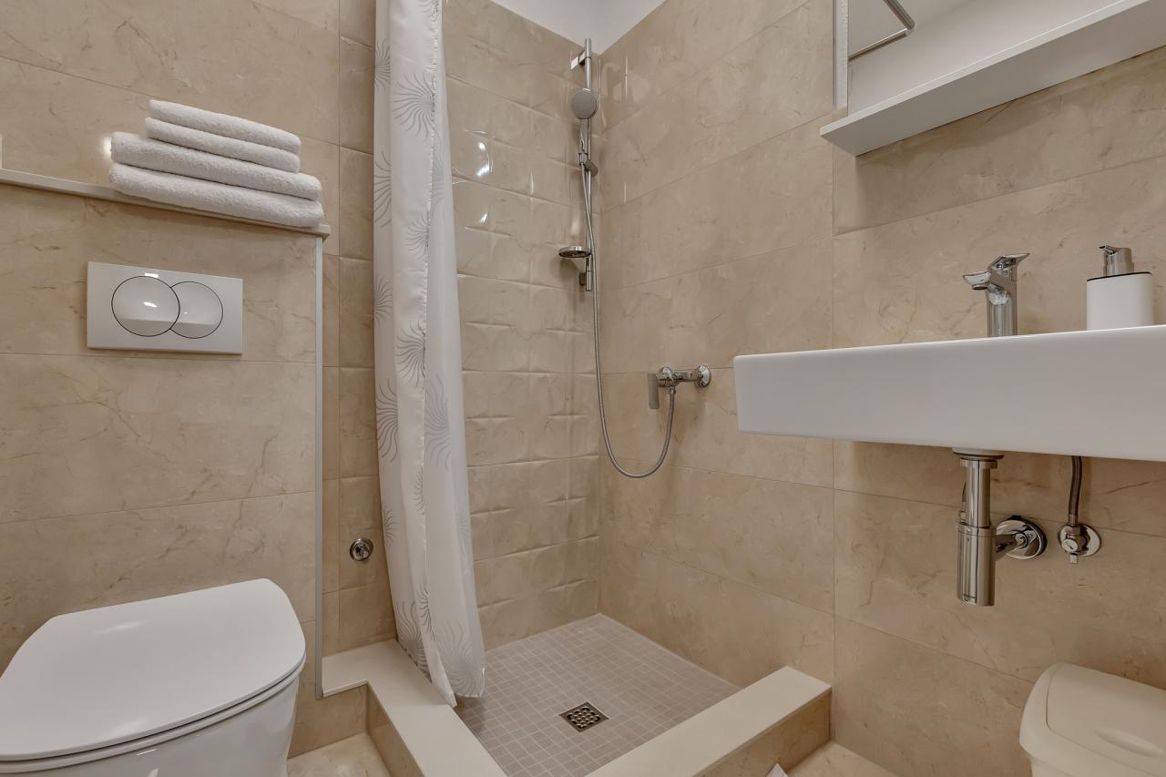 - Vybavenie: WC, sprchový kút, , zrkadlo, , skriňa, sušič na