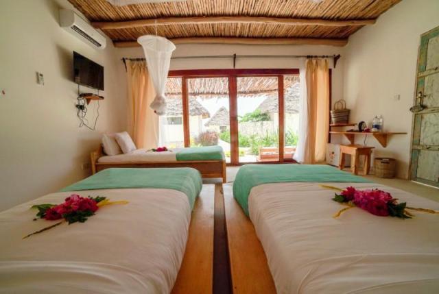 představuje podstatu Zanzibaru, jeho vůně, barvy a textury, kde se tradice setkává s moderností v příjemných, reprezentativních prostorech plných šarmu. Nachází se na malém útesu s neuvěřitelným výhledem na Indický oceán. Má také soukromou pláž a potápěčské centrum, které se nachází pár minut od hotelu. Na soukromou pláž se dostanete pěšky nebo bezplatnou soukromou dopravou z hotelu. Ubytování: Všechny pokoje mají pečlivou výzdobu, klimatizaci, TV, kávovar, prostornou koupelnu, postel King nebo dvě postele, lednici, moskytiéru a toaletní potřeby, vysoušeč vlasů a plážovou tašku. Všechny pokoje mají rozměry přibližně 35 m²a mají terasu a soukromou zahradu. |